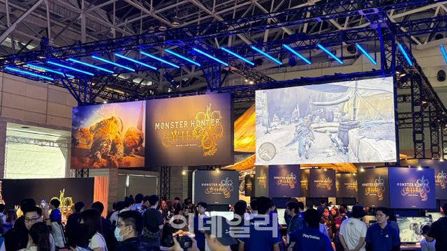 일본 ‘도쿄 게임쇼 2024’가 열린 마쿠하리 메세 내 캡콤 ‘몬스터헌터: 와일즈’ 부스에 몰린 인파(사진=김가은 기자)