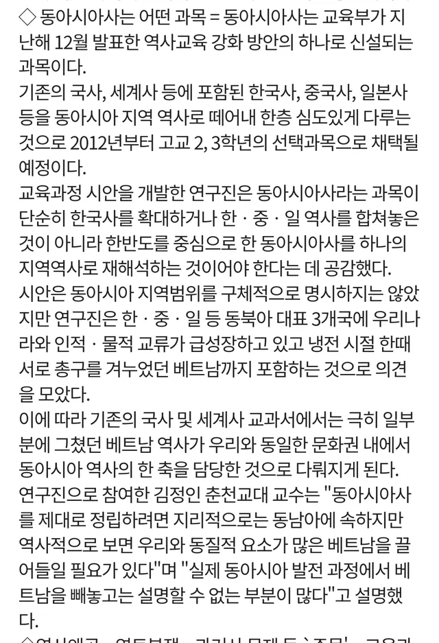 한국은 2007년부터 동아시아사 과목 가이드라인에 베트남을 포함시키고 있다
