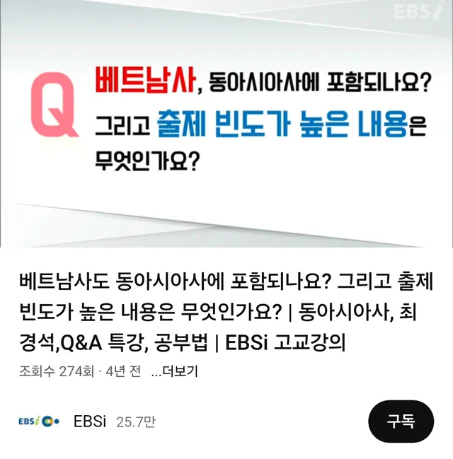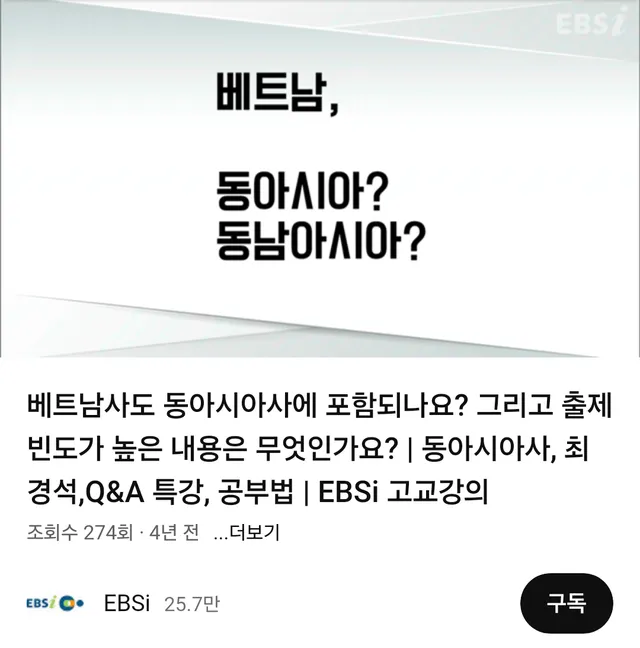 EBS 강의교수가 이게 복잡한 문제라고 언급하면서 일단 동아시아사이 포함되서 문제가 출제된다고 설명하고 있다