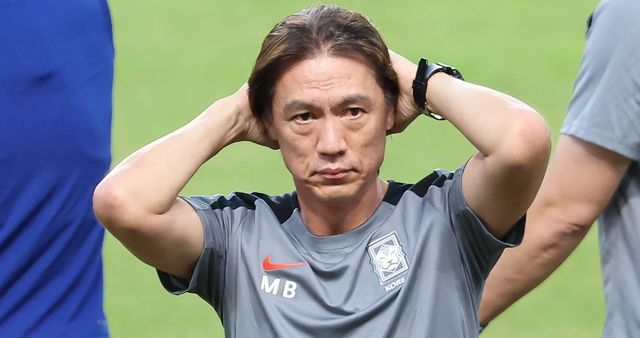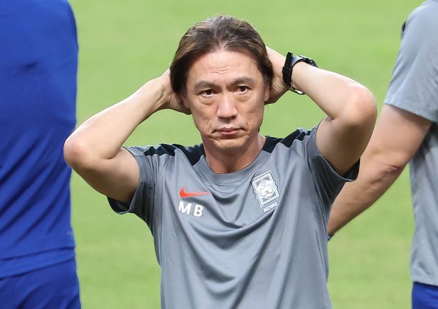 지난 3일 오후 경기 고양시 고양종합운동장에서 가진 소집훈련에서 선수들을 지켜보고 있다. / 뉴스1