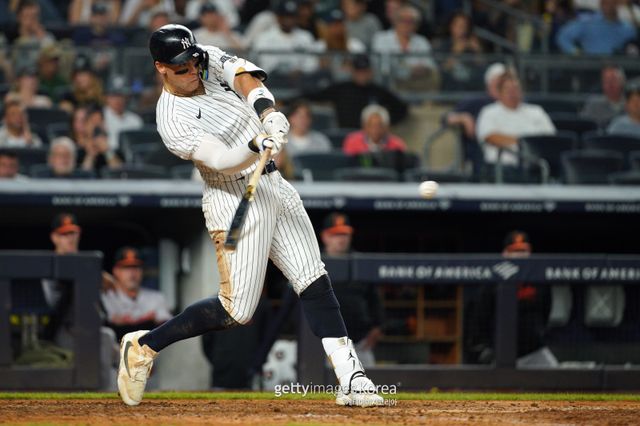 저지는 27일(한국시간) 미국 뉴욕주 양키스타디움에서 열린 볼티모어 오리올스와의 홈 경기에 3번 타자·중견수로 선발 출전, 7회 시즌 58호 홈런을 터트렸다. 볼티모어 오른손 불펜 브라이언 베이커의 96.2마일(154.8㎞/h) 포심 패스트볼을 잡아당겨 왼쪽 펜스를 넘기는 비거리 394피트(120m) 홈런으로 연결했다. 타구 속도는 110.9마일(178.5㎞/h), 발사각이 42도로 높았지만, 가공할 만한 파워로 극복했다.