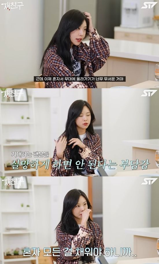 김재중이 솔로 활동 중 가장 적응이 안됐던 것에 대해 묻자 휘인은 "적응이 안됐다기보다는 처음으로 무대 공포증이 생겼다. 팀 활동 하면서는 긴장한 적이 한 번도 없었는데 혼자 올라가려니 너무 무섭더라. 그걸 깨는 데까지 너무 오래 걸렸다"라고 토로했다.