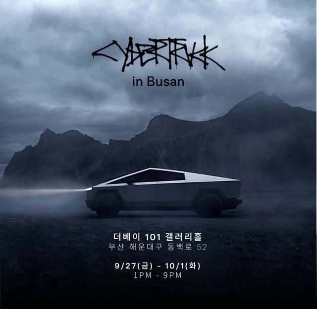 지난 9월 6일 경기도 고양시 킨텍스 오토살롱위크에서 국내에 첫 공개된 사이버트럭은 미국, 유럽, 일본, 중국 등 전 세계 주요 도시에서 전시 투어를 진행하고 있으며, 부산은 서울에 이어 한국에서 사이버트럭을 만나볼 수 있는 두 번째 도시가 된다.