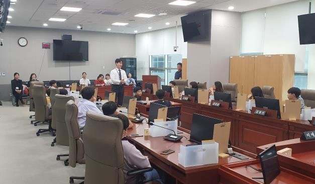 학생들은 먼저 의회 본회의장에서 의사진행 절차와 방식에 대해 간략히 설명을 들은 뒤, 경기마루에서 전시를 통해 경기도의회 역사와 의정 성과, 경기도의 발전상을 살펴봤다.