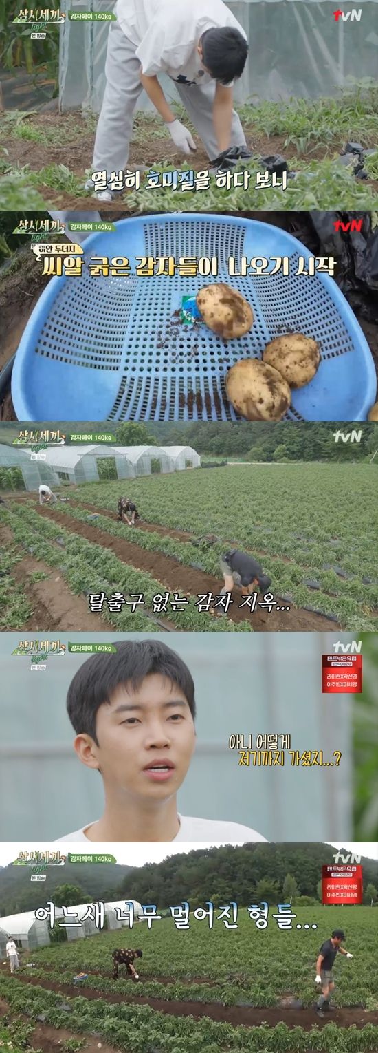 이날 이들이 두 시간 동안 캔 감자는 120kg였다. 세 사람은 임영웅이 가져온 수박으로 노동을 마무리했다.