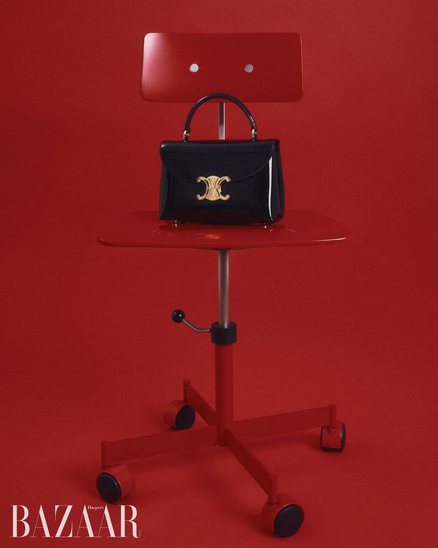 보 장식 미니 드레스, ‘틴 니노’ 백, 반지는 모두 Celine by Hedi Slimane.