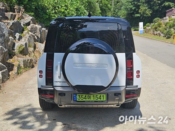 후면은 형제 모델인 디펜더 90·110과 동일하다. 디펜더의 디자인 기조를 충실히 따랐으며 스페어 휠, 타이어와 커버는 오프로드 SUV임을 강조한다.
