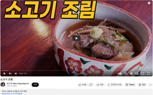 7. 유튜브에 올린 요리 영상 1/3가 조림임