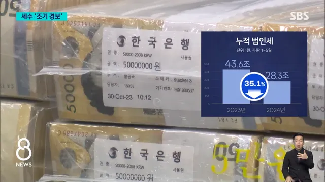 5월까지 누적 법인세는 28조 3천억 원에 머물러 1년 전보다 35%나 급감했습니다.