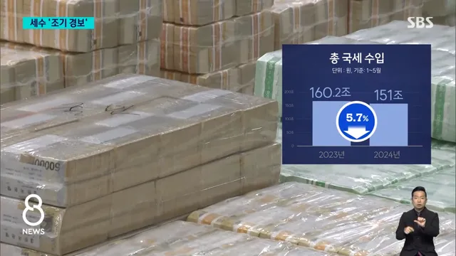 3대 세목 가운데 소득세와 부가가치세 수입은 늘었지만, 법인세수가 워낙 많이 줄어든 탓에 5월까지 전체 국세 수입은 지난해 같은 기간보다 5.7%, 9조 1천억 원이 감소했습니다.