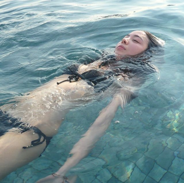 사진에는 김규리가 비키니를 입은 채 수영장에서 물놀이를 즐기는 모습이 담겼다. 그는 물에 몸을 맡긴 듯 누운 채 하늘을 바라보며 여유를 즐겼다.