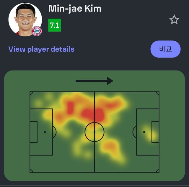 축구 통계 매체 '소파스코어'가 제공한 김민재의 히트맵이 그의 활약상을 나타냈다. 왼쪽 측면을 중심으로 노란색 혹은 붉은색으로 김민재의 히트맵 그래픽이 나타났다. 센터백 중 왼쪽 수비수를 맡은 김민재의 다양한 능력이 히트맵에 잘 소개됐다.