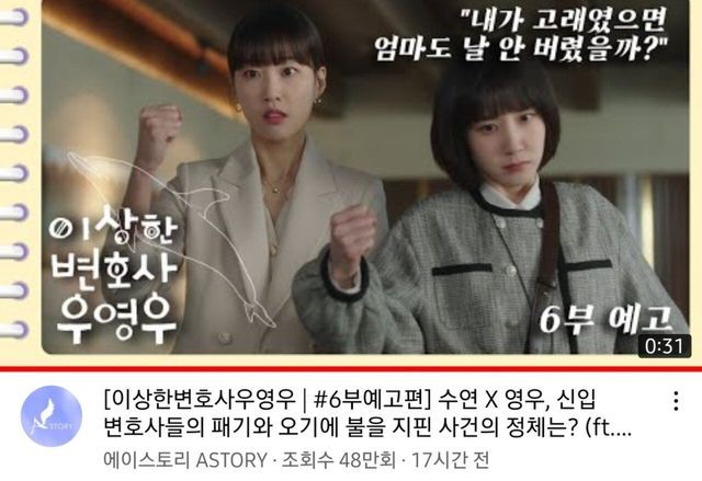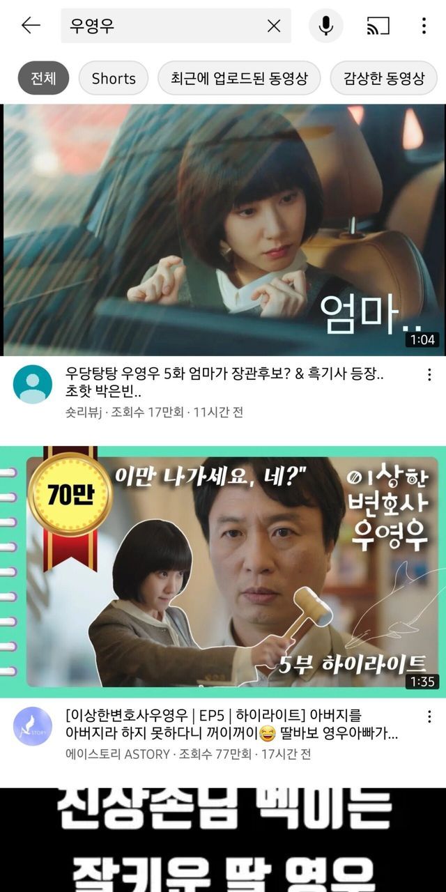 지금 유튜브 틀어서 우영우 관련영상 조회수 봐보셈… 말이안됨 ㅋㅋㅋㅋ