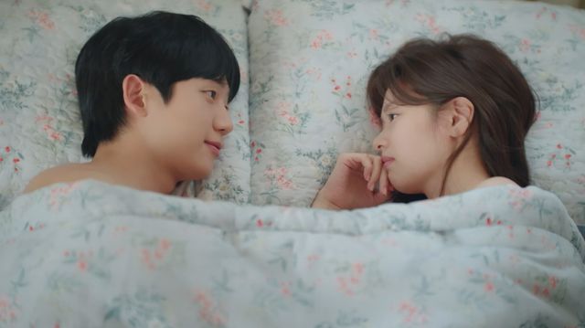 이들은 침대에 나란히 누워 서로를 바라보며 달달한 대사를 주고 받았다. "왜 그렇게 뚫어져라 쳐다봐?", "그냥, 이 순간이 꿈 같아서. 믿기지 않아서" 등의 대화가 오가면서 첫날밤을 보낸 후의 분위기를 그려내고자 했다.