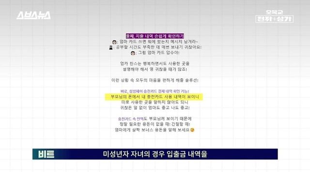 청소년 자녀의 입출금 내역을 부모가 바로 확인할 수 있도록 하는 기능 넣고 홍보중임