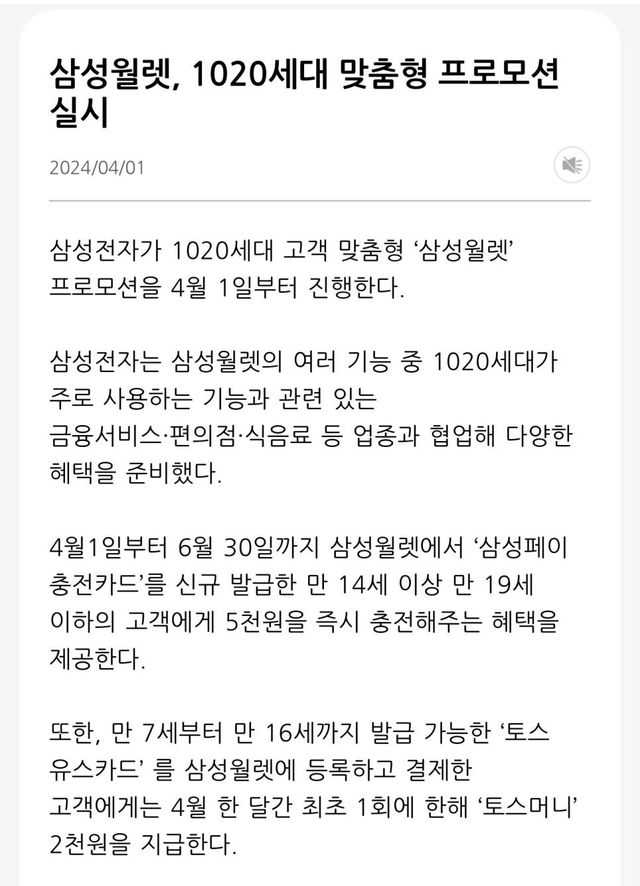 1020타겟으로 하는 삼성월렛 프로모션 출시