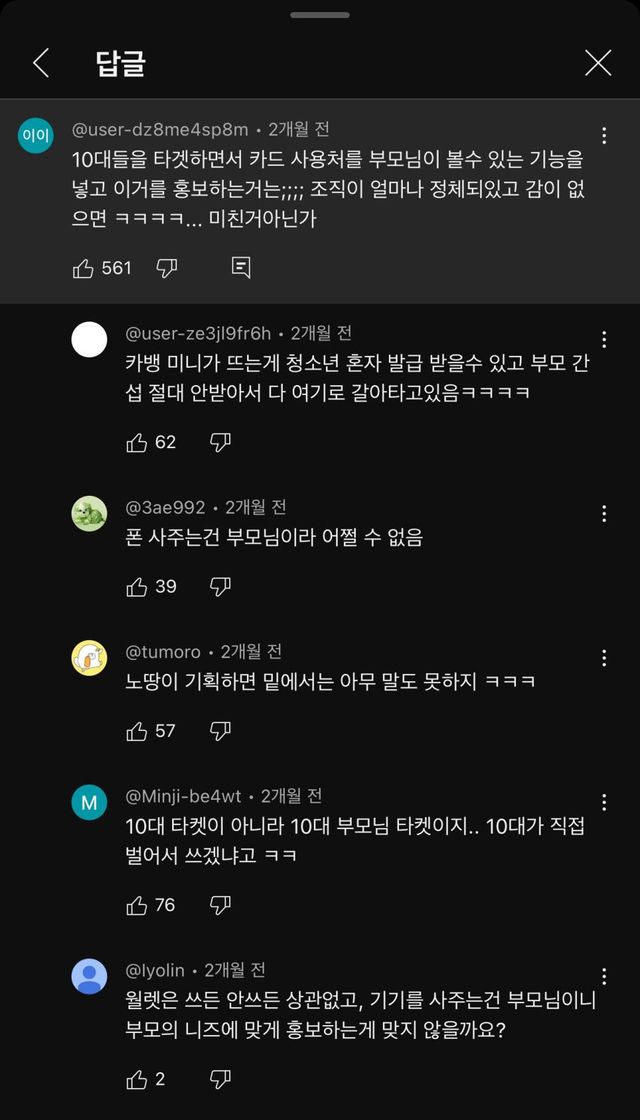 1020니즈에 맞춘다면서 뭐하는거냐 vs 어차피 연말정산때 다 볼 수 있지않냐&부모가 실질적 소비층인데 부모 타깃으로 잡는 게 맞다는 의견