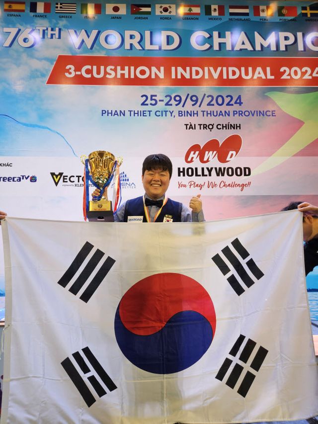 결승에서도 에버리지 2.5(20이닝 50점)를 올리면서 2014년 최성원 이후 10년 만에 세계선수권에서 우승을 차지한 대한민국 선수라는 영광을 차지하게 되었다.