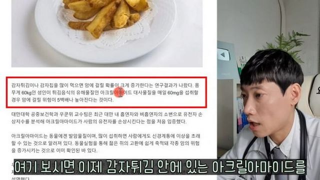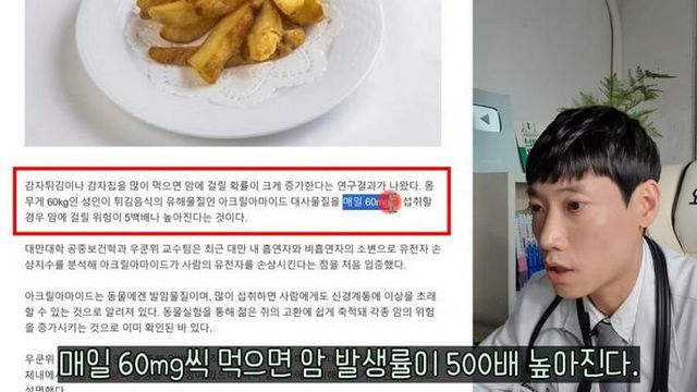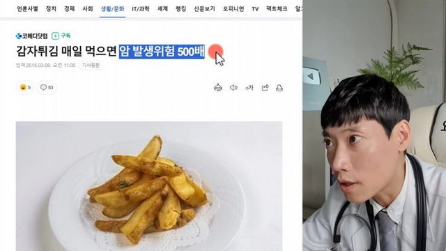 감자튀김 매일 먹으면 암발생률 500배' 라는 기사를 본 의사