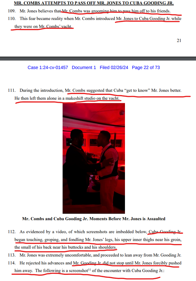 (사진 : 퍼프 대디와 쿠바 구딩 주니어가 원고가 성폭행 당하기 전 만난 영상의 스크린샷)