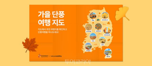 [투어코리아=유경훈 기자] 가을 단풍시즌을 앞두고 한국관광공사와 카카오모빌리티가 전국 단풍 명소 27곳을 소개하는 ‘가을 단풍 여행 지도’를 선보였다.