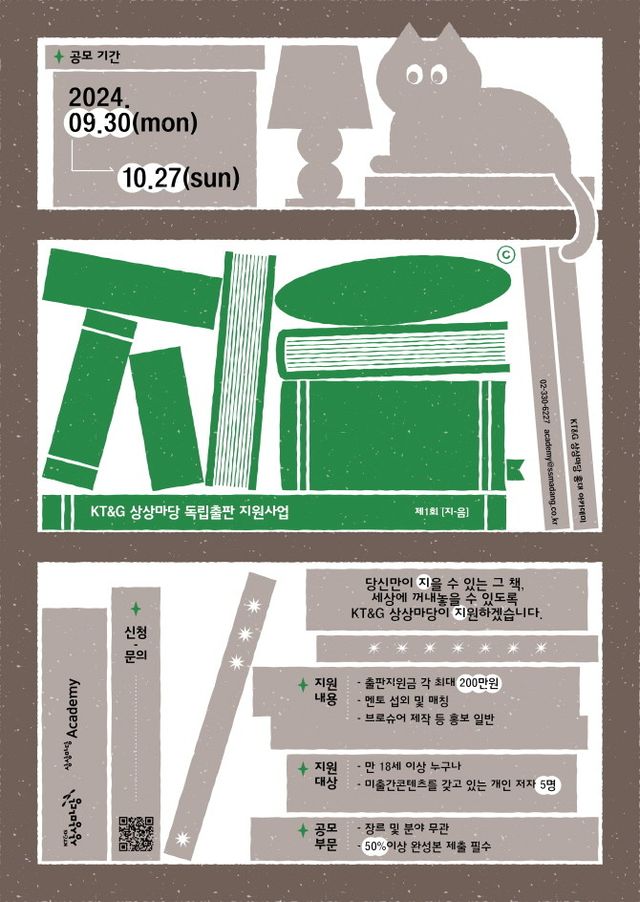 김강민 KT&G 문화공헌부장은 "지-음은 독립출판 작가들의 독창성 있는 순수 창작물 출판을 지원하기 위해 기획됐다"며 "앞으로도 국내 비주류 문화예술 분야의 활성화를 위해 다양한 프로그램을 선보일 것"이라고 말했다.