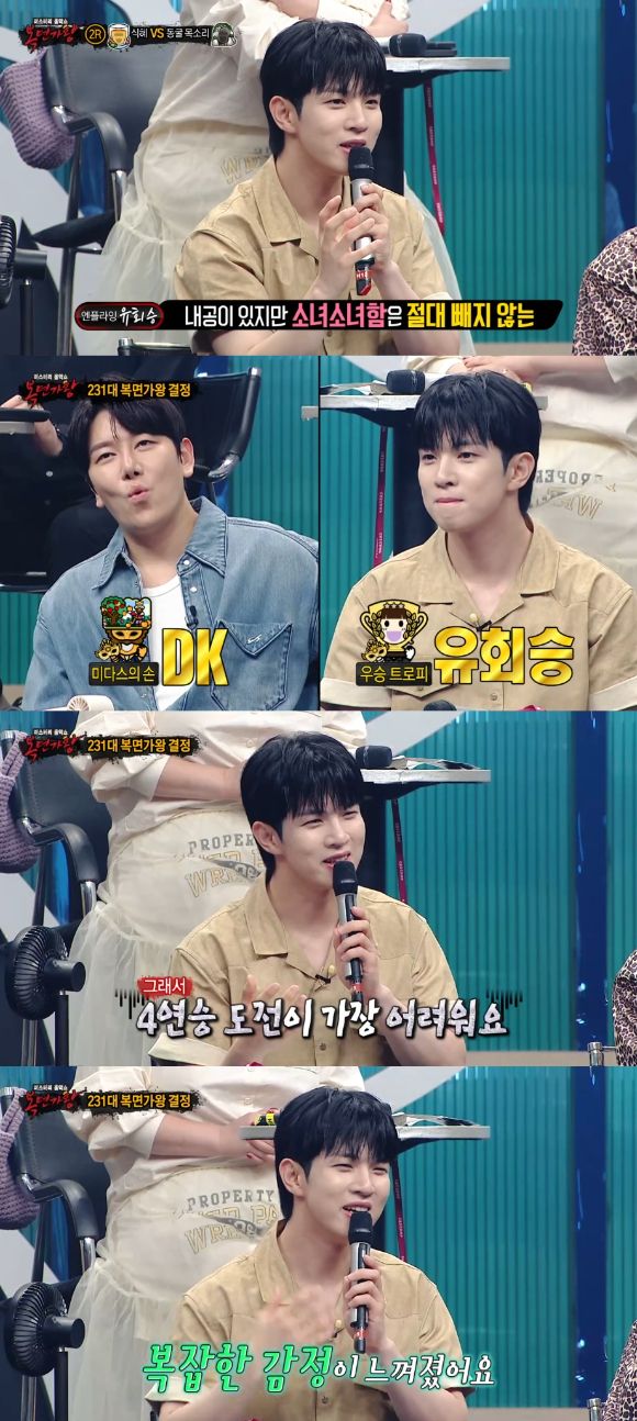 [조이뉴스24 박진영 기자] 엔플라잉 메인보컬 유회승이 '4연승 가왕'답게 정확한 추리와 공감력, 찐리액션으로 존재감을 발휘했다.