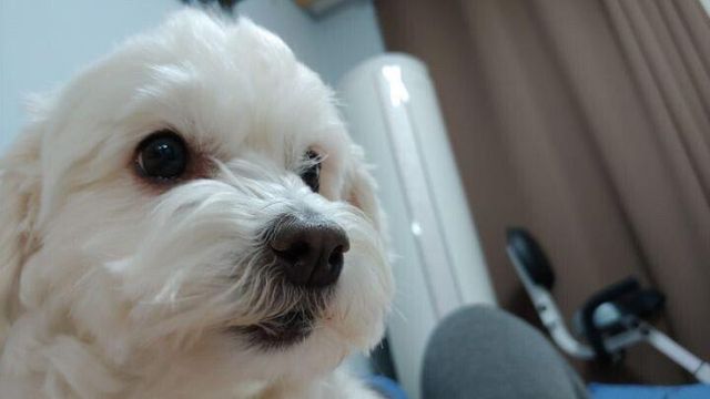 쿠션사이에 낑겨 자다가 꾸겨진 강아지