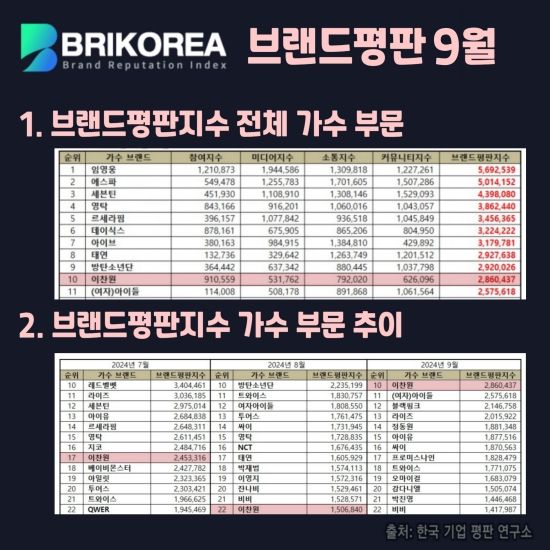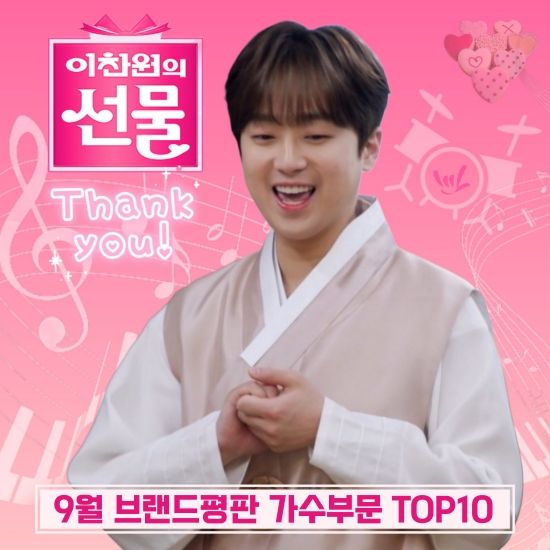 (엑스포츠뉴스 이정범 기자) 이찬원이 한국기업평판연구소의 9월 가수 브랜드평판 분석에서 10위를 차지했다.