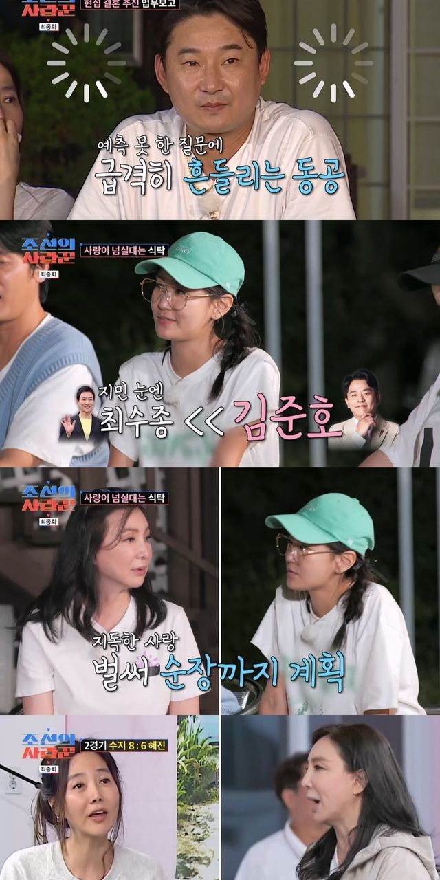 한편, 남은 사랑꾼들은 바비큐 파티와 김치찌개를 준비했다. 저녁 식사 하던 중 이천수는 “심현섭의 결혼은 100%라고 말씀하시는데, 아직 멀었다. 심 씨들을 더 동원할 것”이라고 야심 찬 포부를 내비쳤다. 이에 ‘경성 커플’ 김지민이 “(김준호와) 4년 만났는데, 결혼 생각이 더 생겼다. 최수종 선배님이 김준호 씨보다 못한 것 같다”며 “모든 로맨스 가이를 이긴다고 생각한다”고 콩깍지 넘치는 발언을 이어갔다. 그리고 김국진의 강수지를 위한 ‘아침밥 고백’부터 ‘결혼 18년 차’ 심혜진의 순장 계획까지 놀라운 사랑꾼들의 사연이 쏟아졌다.