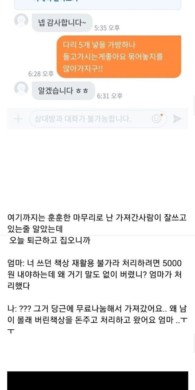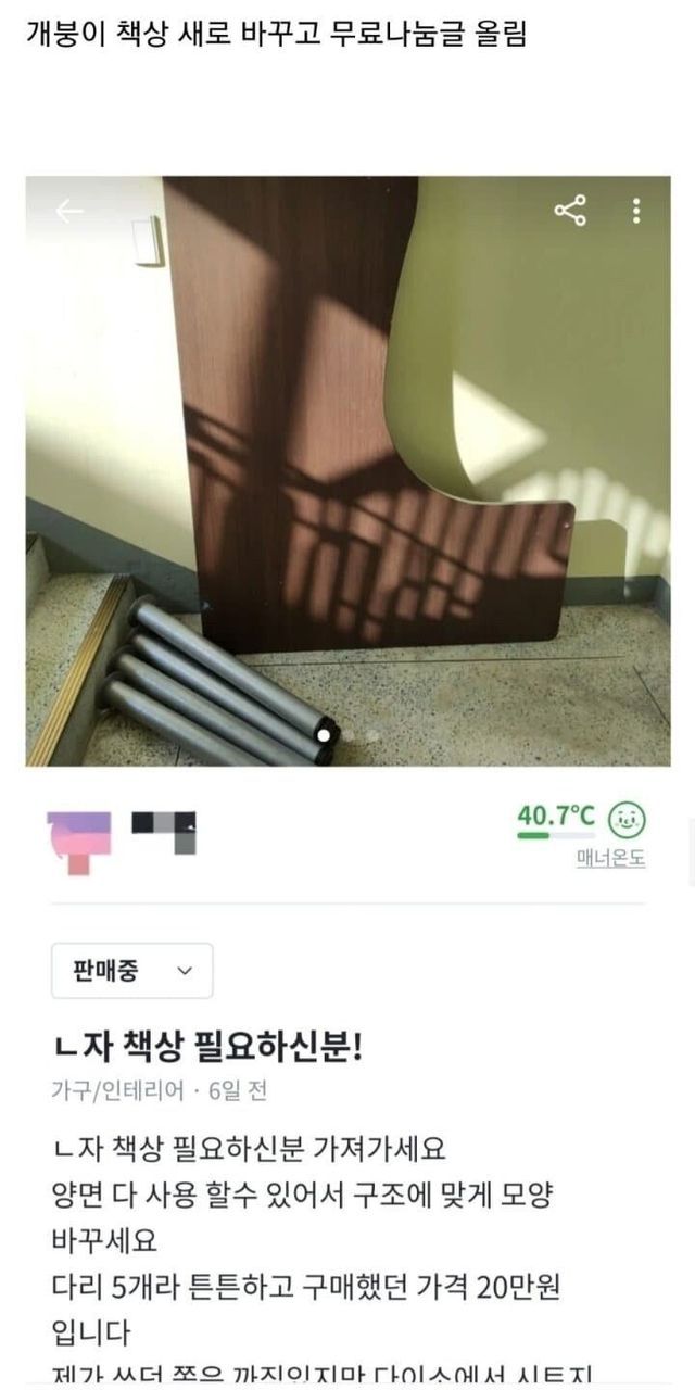 1. 책상 바꿔서 쓰던거 나눔 했는데