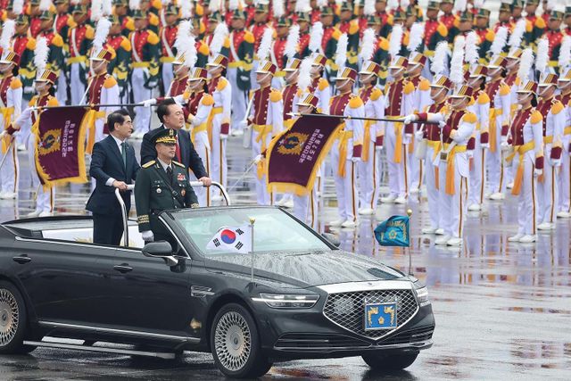 윤석열 대통령이 1일 경기도 성남 서울공항에서 열린 건군 제76주년 국군의 날 기념식에서 사열하고 있다. / 뉴스1
