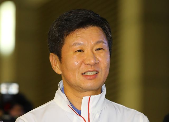 정몽규 2016 리우하계올림픽 대한민국 선수단장 시절인 2016년 7월 26일 밤 선수단 본진과 전세기편으로 브라질 리우데자네이루로 출국하기 전 소감을 말하고 있다. / 연합뉴스