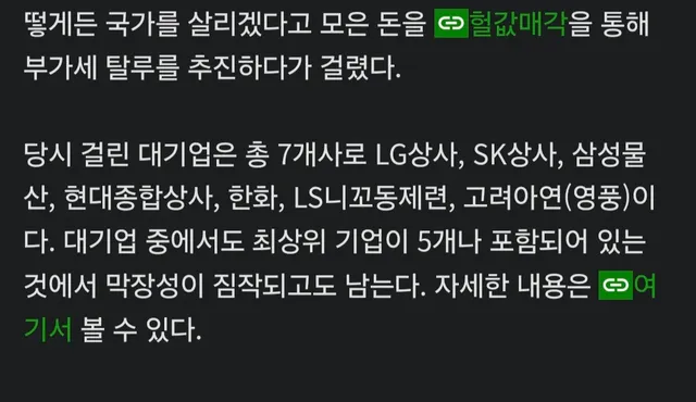 모인금 대기업이 팔아서 탈루하다가 걸림