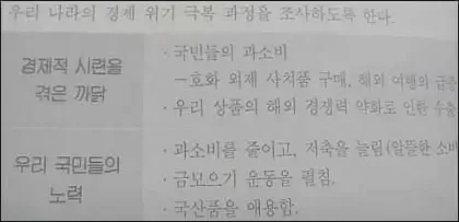 IMF 끝난뒤에는 국민이 과소비해서라고 가르침.
