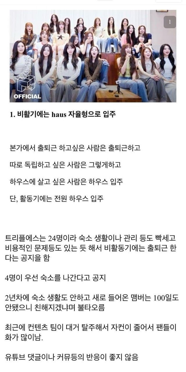 -걸그룹 멤버가 숙소생활 안 하고 출퇴근한다고 해서 일부 팬들 불만