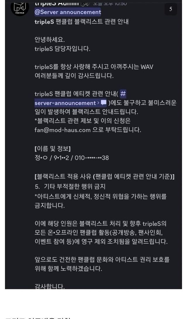 아이돌에게 정신적 위협을 가하다가 차단당한 팬 사건