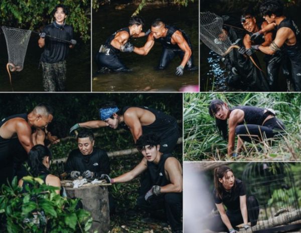 제작진이 공개한 스틸 컷에서는 성별도, 나이도 모두 잊은 채 오직 ‘생존’을 위해 분투 중인 ‘생존왕’ 후보들이 포착됐다. 특전사 출신으로 20대를 야외 예능에 바친 ‘야생 황태자’ 이승기는 살아 펄떡이는 장어를 잡은 채 활짝 웃고 있다.