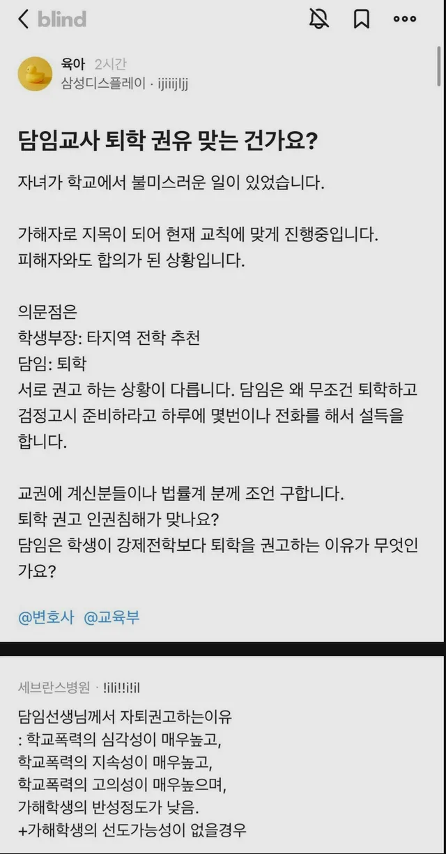 담임교사의 퇴학권유… 이게 맞는건가요?