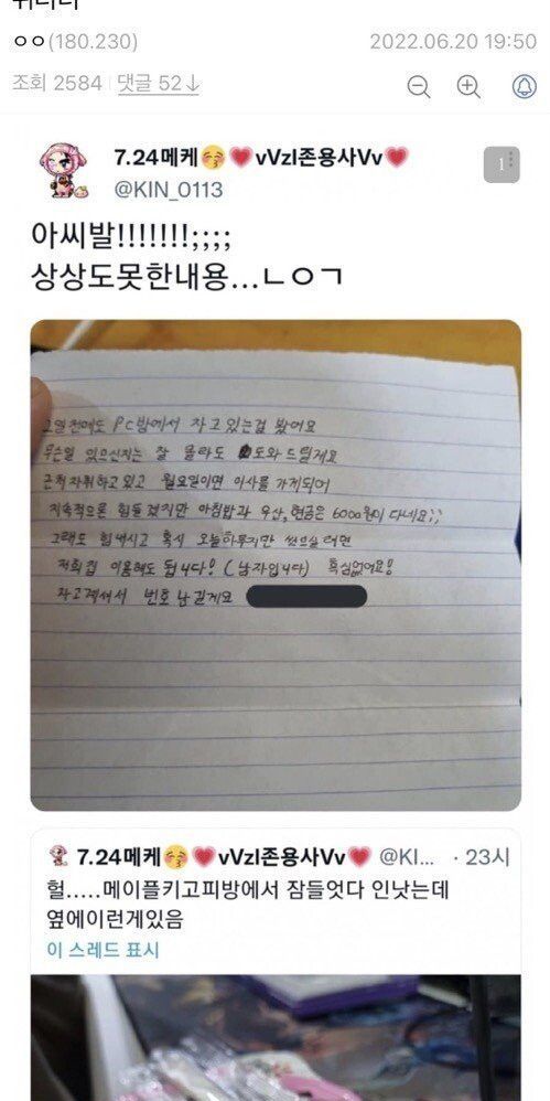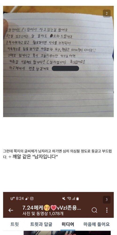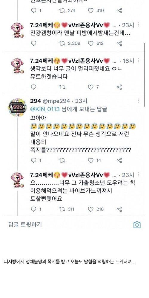 쪽지를 받아서 남혐이 생긴 트위터녀