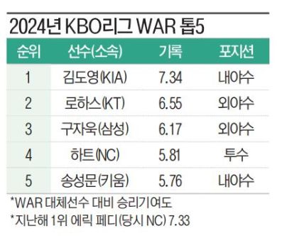 마땅한 MVP 대항마가 없다는 것도 김도영의 수상 가능성을 높인다. 후반기 투수 4관왕(다승·평균자책점·탈삼진·승률)에 도전한 외국인 선수 카일 하트(NC 다이노스)가 시즌 마지막 등판에서 부진했던 것도 김도영에겐 호재. 하트는 지난달 25일 창원 SSG 랜더스전에서 6이닝 6실점 패전 투수가 되면서 평균자책점과 승률왕 타이틀에서 멀어졌다. 다승마저 공동 3위까지 미끄러져 MVP 표심에서 멀어졌다는 평가다. 다승 공동 1위 겸 평균자책점 국내 1위 원태인(삼성 라이온즈)과 역대 두 번째 시즌 200안타 고지를 정복한 외국인 타자 빅터 레이예스(롯데 자이언츠) 등이 MVP 경쟁에 뛰어들 전망인데 김도영은 개인과 팀 성적, 두 마리 토끼를 모두 잡았다는 점에서 우위다.