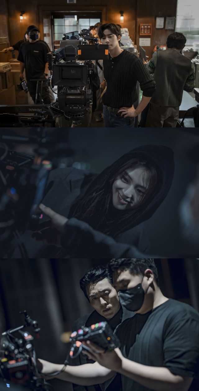 여기에 진지하게 모니터링하고 있는 박서준과 한소희 그리고 이무생의 모습은 '경성크리처' 시즌2를 향한 배우들의 열정을 보여 준다.