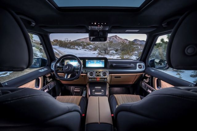 내부는 선구적인 디자인 언어와 최신형 장비를 더했다. 송풍구는 원형의 멀티빔 LED 헤드라이트를 본떠 디자인하고 조명을 적용했다. 터치 조작 기능을 갖춘 최신형 다기능 스티어링 휠에는 나파 가죽이 적용됐고, 앰비언트 라이트와 가죽 인테리어 소재를 통해 고급스러운 분위기를 완성한다. 터치 조작이 가능한 12.3인치 운전자 및 미디어 디스플레이와 MBUX 인포테인먼트 시스템을 G-클래스 중 최초로 탑재해, MBUX 증강현실 내비게이션 이용도 가능해졌다.