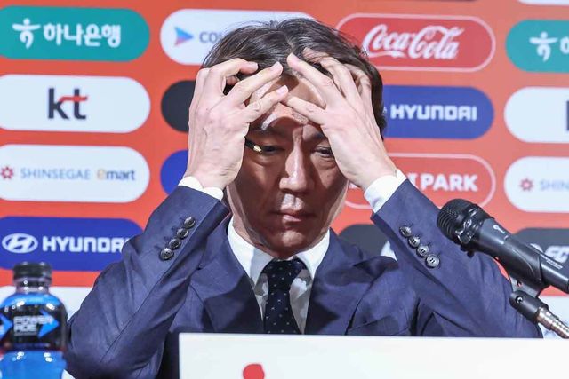 홍명보 대한민국 축구 국가대표팀 감독이 지난달 30일 오전 서울 종로구 축구회관에서 열린 '2026 북중미 월드컵 아시아지역 3차 예선 요르단·이라크전 대표팀 소집 명단 발표 기자회견'에 참석해 머리를 쓸어올리고 있다. 대표팀은 오는 10월 10일 오후 11시(한국시간) 요르단 암만에서 요르단과 원정 경기를 치른 뒤 15일 오후 8시 용인미르스타디움에서 이라크를 상대한다. / 뉴스1