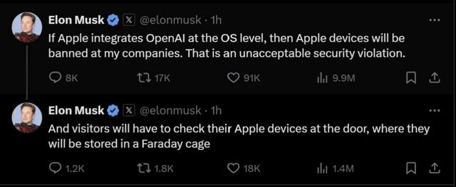 애플 Chat GPT 도입 맹비난하는 일론 머스크