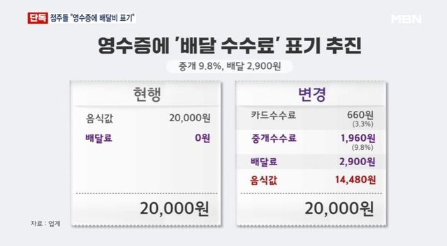 사실상 배달물가는 중계업체때문에 상승하는데 점주들이 욕먹는 지금 상황이 불합리하다 느껴져서 영수증에 수수료 기입하는 방안 추진중