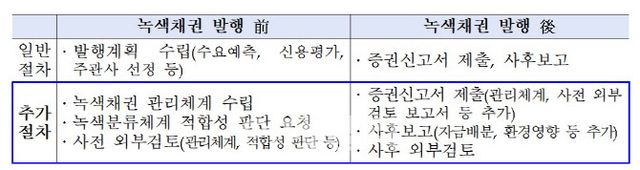 채권 발행의 본래 목적에 충실하기 위해서이지만 이같은 특성 때문에 녹색채권시장 활성화가 제대로 되지 않고 있다. 발행·보고 절차가 복잡하고, 발행자와 투자자 간 정보의 구조적인 정보의 비대칭성이 있을 수밖에 없어 환경정보의 투명성을 높이는 데 현실적인 한계가 있어서다.