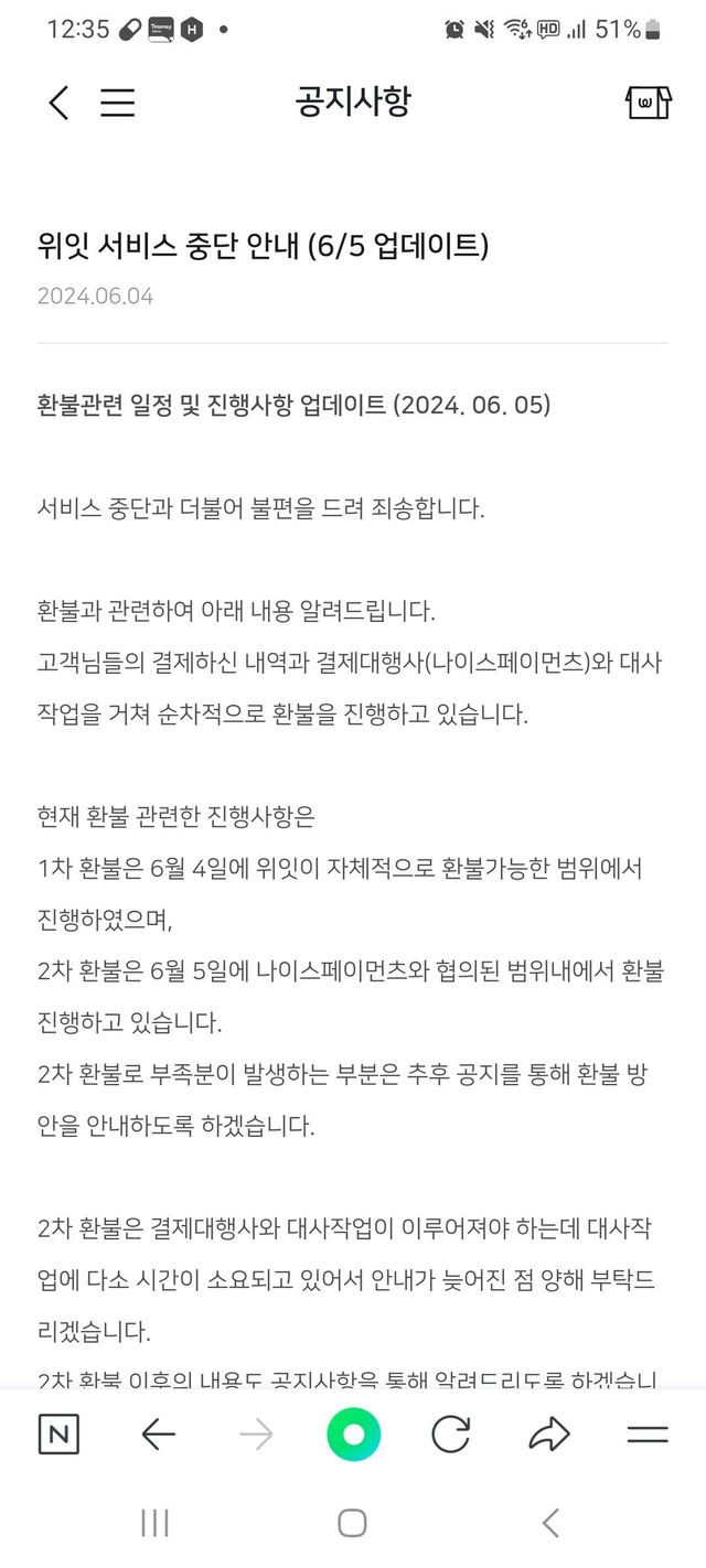 6월 4일 서비스 중단 공지를 6월 4일에 올림.
