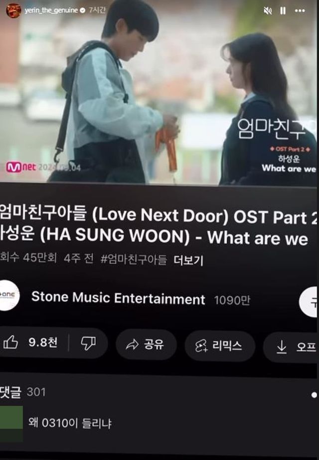 4일 '더쿠' 등 각종 온라인 커뮤니티에 정해인이 주연인 tvN 드라마 '엄마 친구 아들'의 OST가 가수 백예린의 '0310'이란 곡과 비슷하다며 표절 의혹을 제기하는 글이 올라왔다.