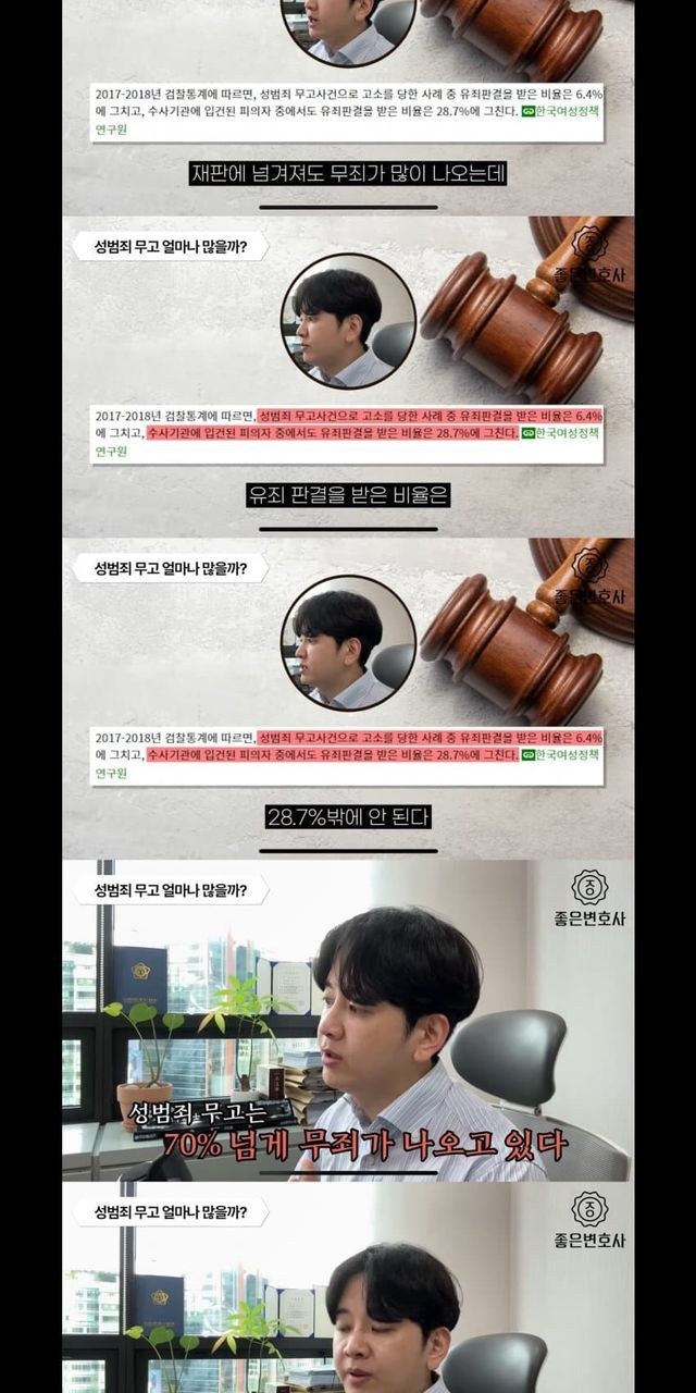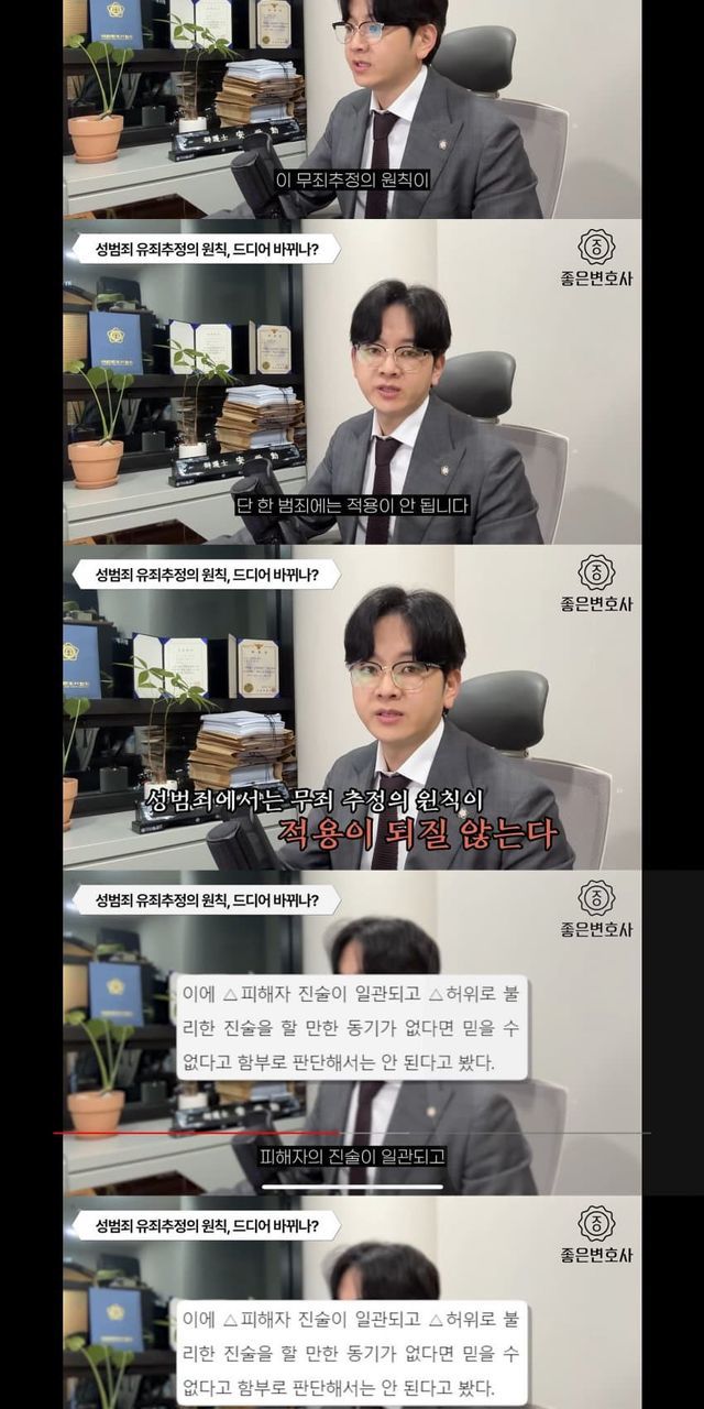 먼저 한국은 킹인지감수성에 의해 유일하게 성범죄사건에선 여성의 일관된 진술을 최우선으로 생각하며 유죄추정으로 판결해버리는 어이없는 제도를 가지고있음